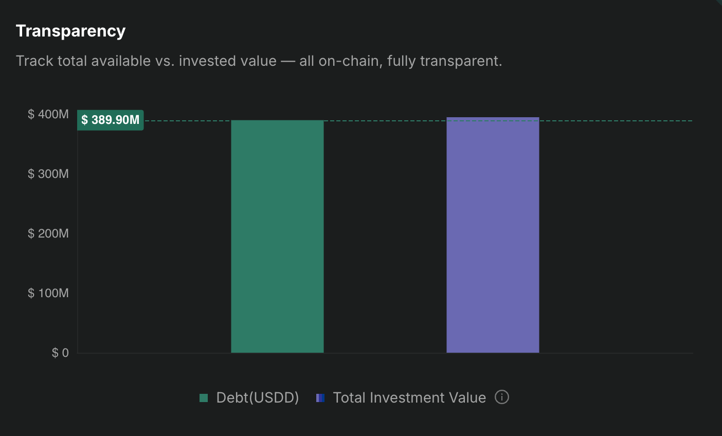 Collateral for USDDl includes TRX - the native token of the TRON blockchain, sTRX - the staked version of TRX, and additionally the cash stablecoin USDT. All collateral is held in publicly verifiable smart contracts with specific addresses on TRON and Ethereum, enabling real time verification of reserves. This can be found on the USDD data dashboard.