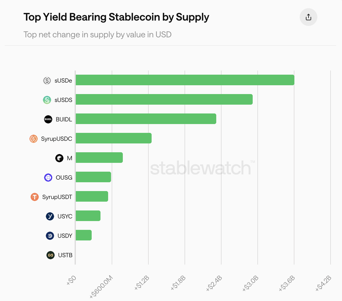 First, we establish the big picture. The YBS market has demonstrated explosive growth, expanding to over $12.5B in total supply. With the new module, you can track this historical growth and compare the growth velocity of different stablecoin projects.
