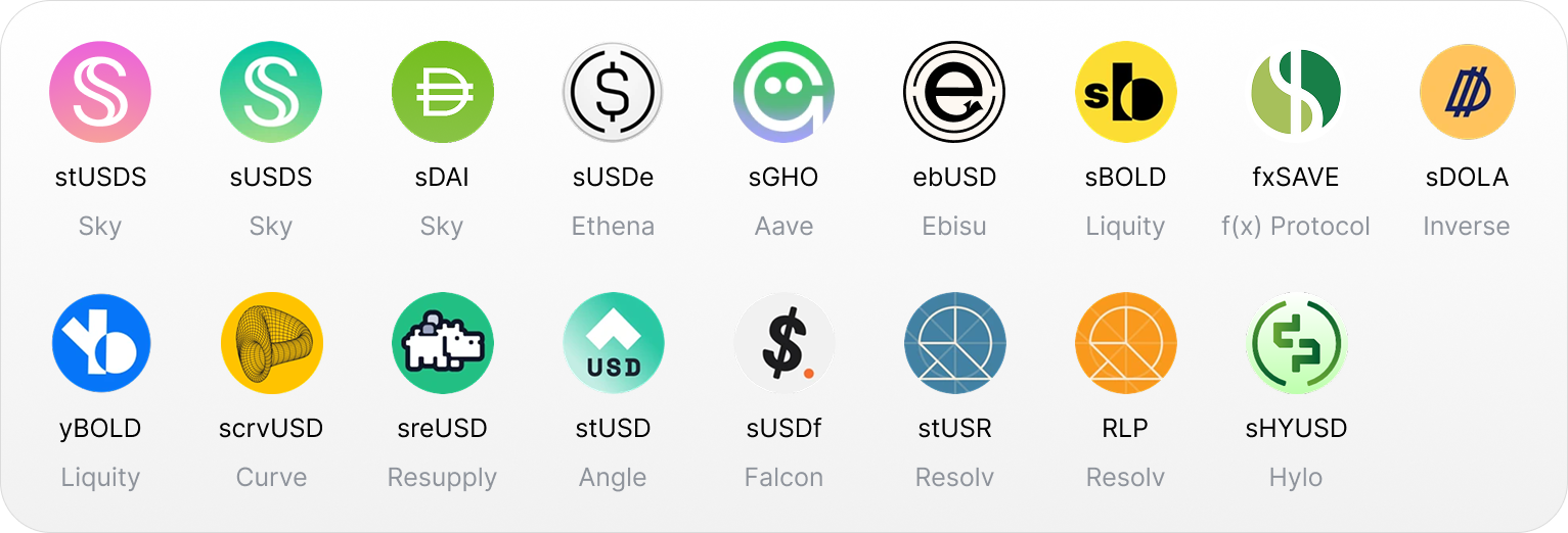 In direct contrast to the TradFi-bridged models, the second category of YBS derives its economic power from within, generating yield through purely crypto-native activities. Unlike their RWA-backed counterparts, the yield is not imported from an external financial system but is an intrinsic product of onchain mechanics, leverage demand, and protocol-generated fees. A return profile is thus created that is fundamentally uncorrelated with traditional financial markets, offering a powerful tool for portfolio diversification.